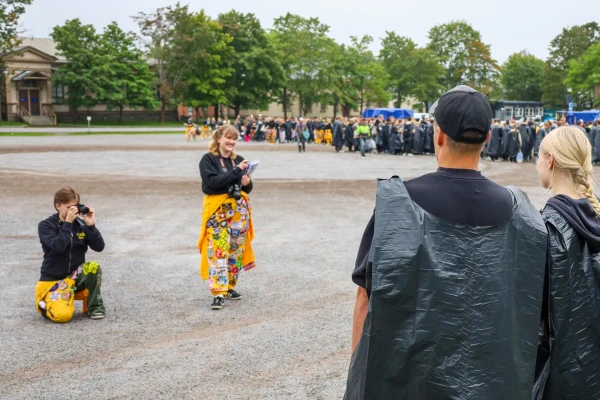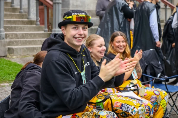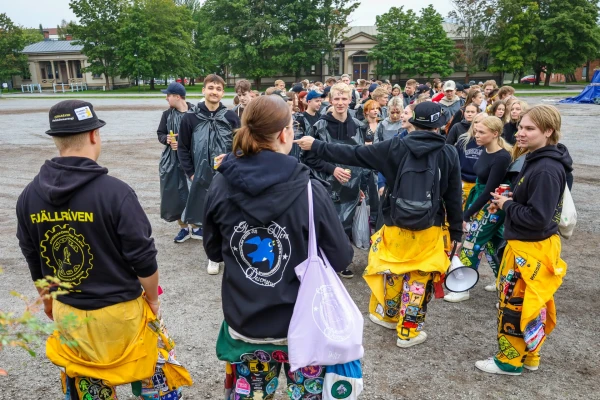 Vincent Aspholm, ordförande i studentföreningen Filicia, och Jasmin Forsten, ordförande i studentföreningen Nud, står och dirigerar gulislagen för att bli fotograferade. Nytt för i år är att även studentföreningen Wstf är med som arrangör.