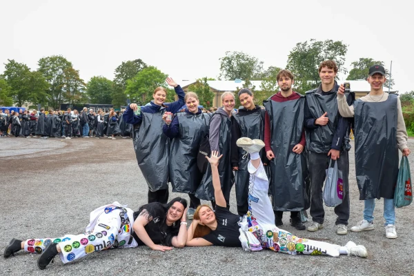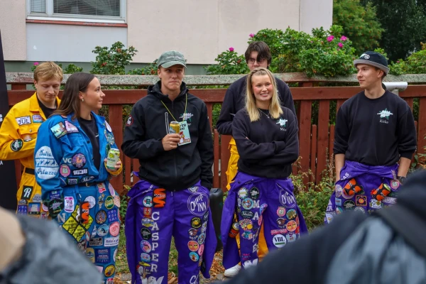 Mi Hästbacka, Ronja Enlund, Sisi Sännel, Tilde Moliis, Isak Granholm, William Forsbacka och Wiktor Forsman var det femtonde laget som startade från kasernområdet. Med sig hade de tutorerna Anna-Stina Öhling och Angelina Nordman. Bild: Milja Ångerman