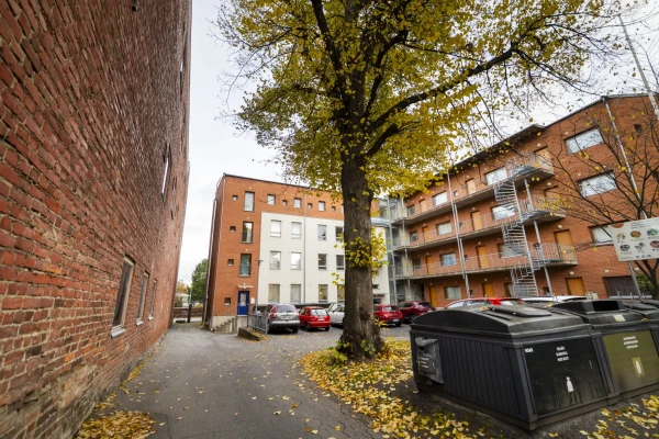 Tack vare många andra studentbostäder i närheten finns redan mycket service. I grannhuset finns det gemensamma samlingsrummet Study and Chill och på gården står två bildelningsbilar.