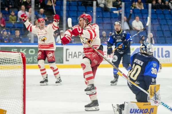 Matti Härmä överlistade K-Espoos målvakt Petteri Rimpinen två gånger. Bild: Tiia Mahkonen/Apollo Photo