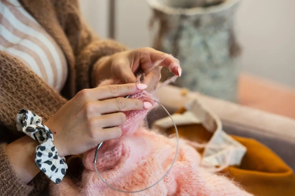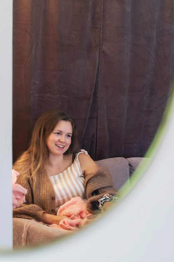 Cindy Ekman-Björkskog har aldrig känt att hon behövt prestera när hon stickar, stickningen har tvärtom varit som en fristad för henne. Bild: Sofie Kåll