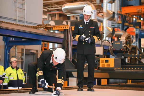 Ceremonin är enkel. Den går ut på att den första delen till fartygets skrov skärs upp i beställarens närvaro. Beställarens och tillverkarens representanter stansar dessutom in sina initialer i metallstycket.
