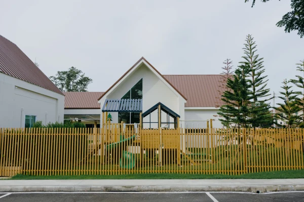 Hei School i Udon Thani öppnades officiellt i augusti och är inne på sitt första läsår. Byggnaden och gården är inspirerad av Finland. Bild: Tammanoon Soontonboon