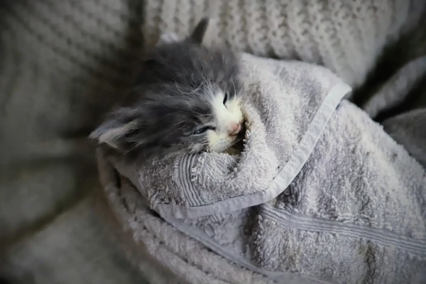 Hon tror att kattungen är en han. Färgerna och teckningen säger henne det. Hon tror också att han är kring fem veckor gammal, född i början av oktober. Eftersom kattungen är nedkyld är första prioritet att få upp kroppsvärmen. Elin försöker också mata honom, lite åt gången.