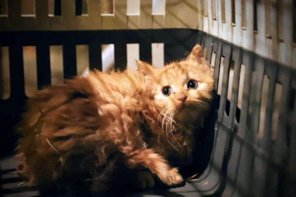 Den här kattungen fångade Elin Widlöf in samtidigt som den gråvita. Men den orangea kattungen är i bättre skick. Bild: Heidi Kojonen