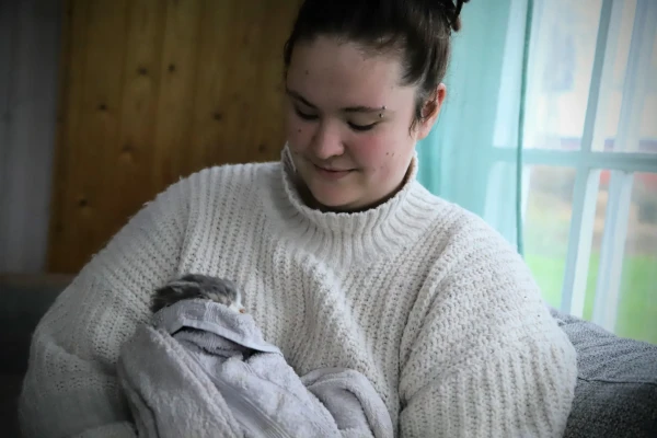 När Elin Widlöf hittar den gråvita kattungen är han så medtagen att han inte orkar protestera. Bild: Heidi Kojonen