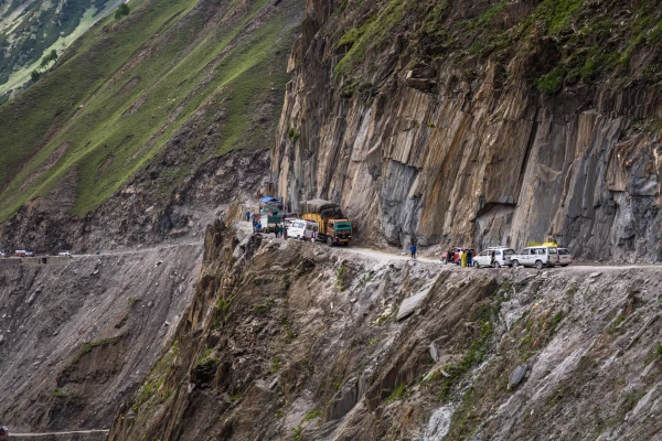 Bergspasset Zoji La som ligger högt uppe bland Himalayabergen i Indien räknas som en av de farligaste i världen, där den passerar på över 3 500 meters höjd. På sina håll finns det inga säkerhetsbarriärer på den nio kilometer långa sträckan. Med en bredd som bara är tillräcklig för en bil att passera så finns det med andra ord inte mycket marginal innan man riskerar att köra över kanten.