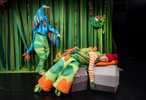 I "Dinosauria" fick publiken följa Stigge Stegosaurus när hen tog reda på vad det är att vara kär. På bilden Susanne Marins och Julia Johansson. Bild: Mikael Nybacka