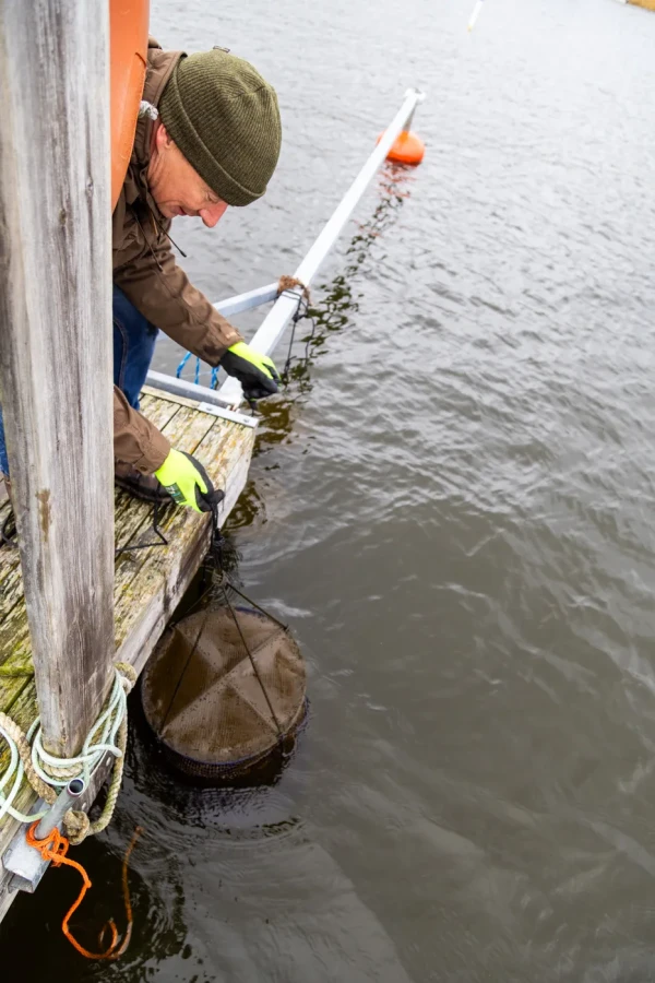 I sumpar som denna läggs dammusslorna innan de förs ut i havet för att renas, berättar Jonas Harald. Bild: Milja Ångerman